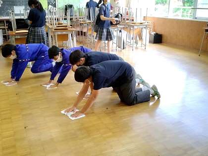 一学期もまもなく終了。 大掃除を頑張っています。 3B教室に感謝をこめて! 小寺