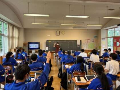 社会の授業で「自由権」について考えました。ICT機器を活用しながら探究的に学んでいました。 豊岡