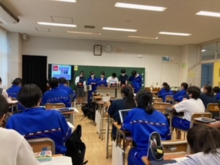 SDGs についてのグループ発表をクラス毎に行いました。ほどよい緊張感、教室に感じられました。どの班も選んだ問題について、背景や関連性を調べてきたことがよくわかる発表でした。聴く態度もよかったです!おつかれさまでした。
