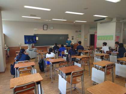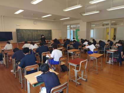 本日7/21(木)午前10時〜10時50分に行われました、夏季休業中補習教室の様子です。1年生は国語科榎本先生、2年生は社会科上村先生、3年生は国語科小寺先生が教えています。