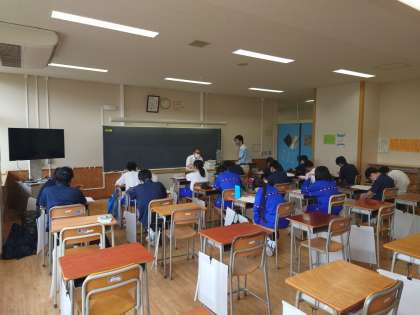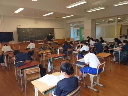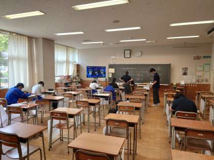 本日7/21(木)午前11時〜11時50分に行われました、夏季休業中補習教室の様子です。1年生は社会科有井先生、2年生は数学科東先生、金野先生、3年生は英語科松田先生、樋口先生が教えています。