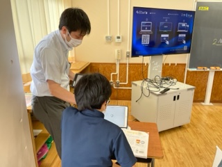 少人数のため、一対一でゆっくり対話を重ねながら、学習を進めています。 (小林隆)