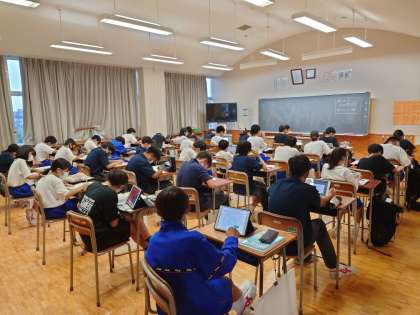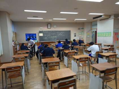 本日7/26(火)午前10時〜10時50分に行われました、夏季休業中補習教室の様子です。1年生は数学科佐藤智先生、2年生は英語科小林隆先生、3年生は数学科山本先生が教えています。