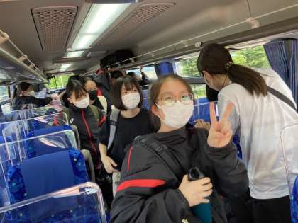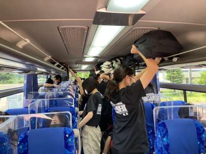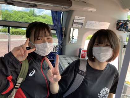 4号車。女子バスケの練習会場に到着し、昼食後、練習開始です。