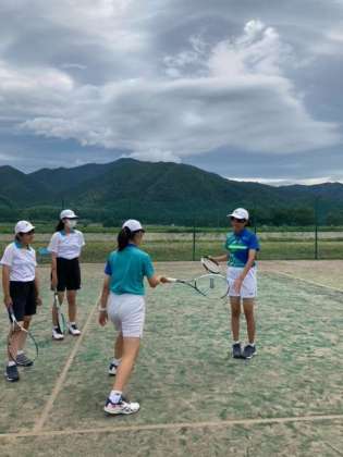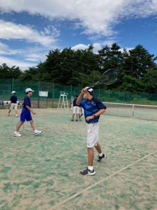 合宿2日目、午前中のソフテニ練習は、ファアハンドのスイングの軌道をじっくりとコーチがマンツーマンで確認をしていただきました。みんなの打球がどんどん良くなってきています。合宿のテニスコートは、蝉の鳴き声が鳴り響いているのですが、みんなのナイスボールの声は、それに負けず劣らず日に日に大きくなっています。