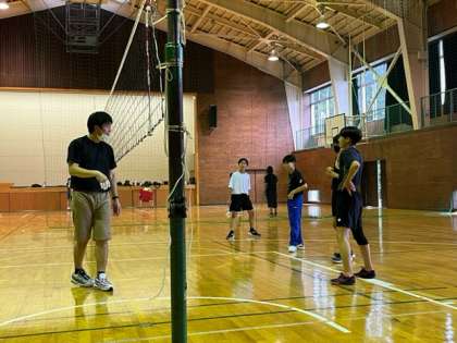 バレー部では、試合形式でフォーメーションの確認を行なっていました。