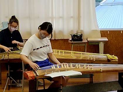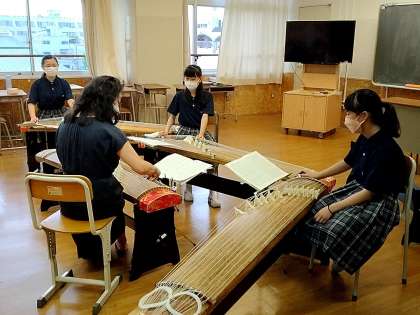 学芸発表会に向けて集中して練習しています。2年生は先輩から引き継いで十七絃を担当する生徒もいます。