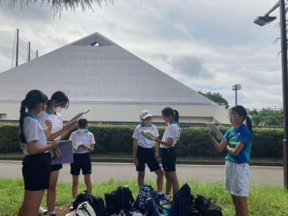 本日は、砧総合運動場で、世田谷区中学校の学年別の試合がありました。初めて試合に出る一年生も多く、最初は緊張している様子でしたが、各ペア今の最大限の力を出して頑張りました。試合前にテニスノートを見ながら、これまでの振り返り、試合後は強豪校の試合を見たり、いろいろな刺激を受けた1日でした。