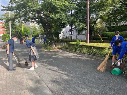 学期初めから多くの生徒が参加し清掃活動行っています!元気いっぱいです!(平野)