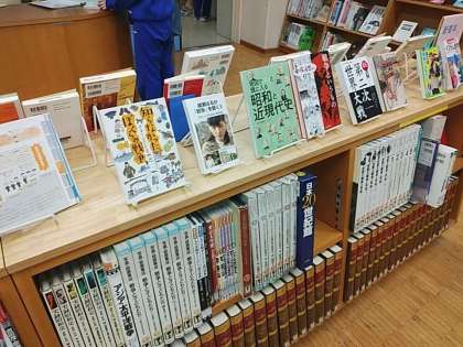 3年歴史の授業では、太平洋戦争〜終戦を学習しています。図書室には沢山の戦争に関連する本があり、司書さんが見やすく展示してくださいました!!