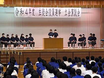 昨日の6時間目に、生徒会役員選挙立会演説会が行われました。立候補者、応援者の生徒たちの真剣なスピーチが素晴らしかったです。本当にお疲れ様でした。結果がどうであれここまで準備してきた思い、過程は成長につながります。