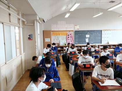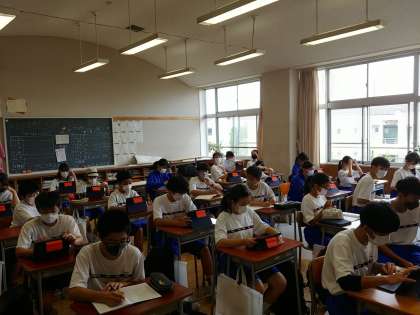 朝学習でキュビナに取り組んでいます。 集中して取り組んでいます。 曽根
