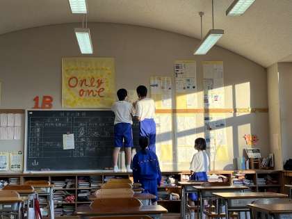 放課後、河口湖の事前学習として制作した新聞を、生徒が教室の後ろに掲示してくれました。
