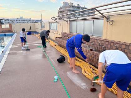 感謝を込めて 公開日 2022/10/04 更新日 2022/10/03 できごと 水泳部でコースロープの掃除をしました。 使った道具に感謝を込めて、また来年も気持ちよく使えるようにしっかりと磨きましょう!(平野) いいね(0)