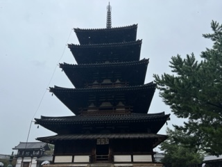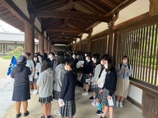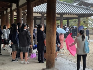 法隆寺到着しました。 ガイドさんからのお話を聞いています♪ 豊岡