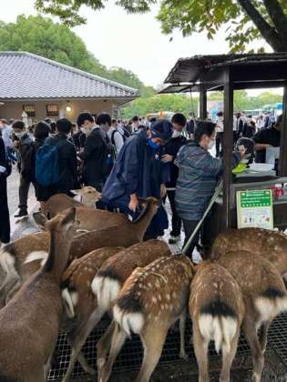 I組も鹿と戯れました。 公開日 2022/10/10 更新日 2022/10/10 できごと I組も鹿せんべいを買って鹿と戯れました。 鹿に囲まれて一枚一枚せんべいをあげる余裕がありませんでした。 I組 郭 いいね(0)