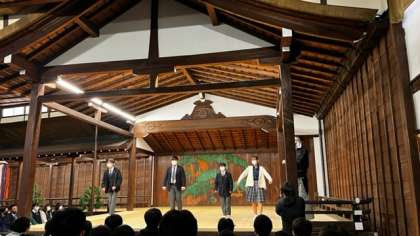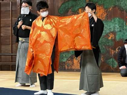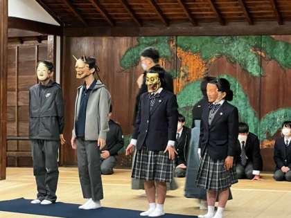お面、衣装、能の動きを体験しました。貴重な体験、ありがとうございます。(松田)