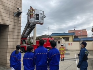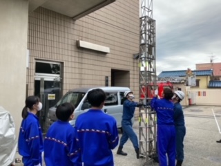 玉川消防署にて4名の生徒が体験しています。 みんな初めての体験に興味津々です。 若佐