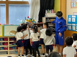 3日目の今日、幼稚園では絵本の読み聞かせを担当するようです。 (小林隆)