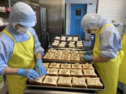 クラスの人数分のスプーンやフォークを数えたり、食パンにツナコーンを乗せたり、クラスワゴンを運んだり。