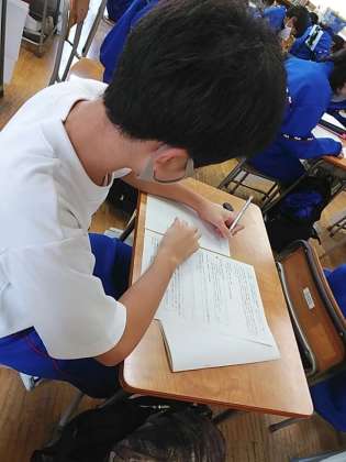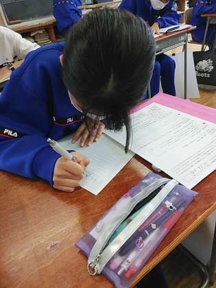 三日間の職場体験の感謝の気持ちを込めて、お礼状を書いています。