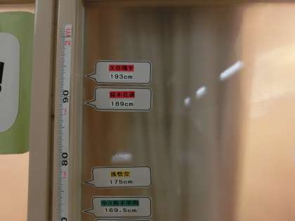 近付いてみると、身長が測れるメジャーが壁に貼られていていました。