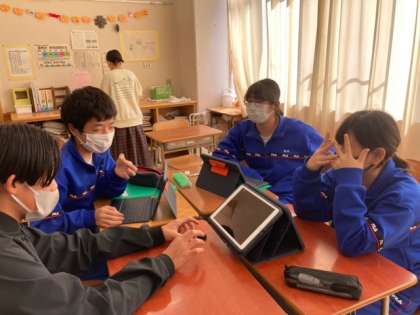 学校のコマーシャル作り、編集作業をしています。いよいよ来週完成です。編集がうまい、音楽のセンスがいい、写真の加工ができる、などなど、お互いに助け合いながら作っています。完成が楽しみです。