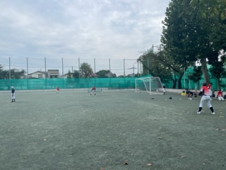 深沢中で合同練習をしています。 2チームに分かれて、バントで試合をしています。 (小林隆)