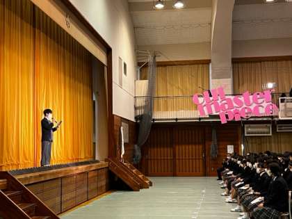 心に迫る副実行委員長の言葉、校長先生のお話、鑑賞上の注意を聞いています。これから始まる発表への期待が高まります。(松田)