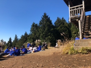 五湖台で昼食です。天気が良くて、富士山がとても良く見えます。美味しいお弁当に舌鼓…保護者の方々、早朝からご準備をありがとうございます!!