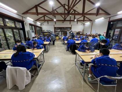 A組がバードコールを作成しています。 真剣に黙々と取り組んでいます! (有井)