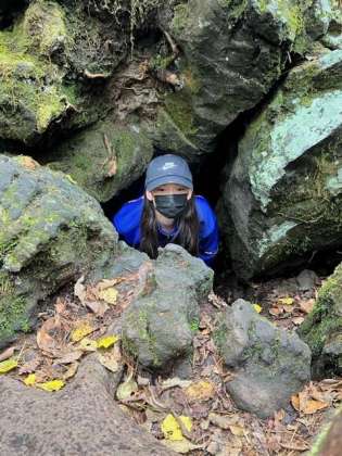 ガイドさんについてもらい、森の中を散策しました。溶岩樹形の中にも入り、貴重な体験ができましたね。