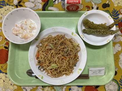どちらも緑色で少し分かりにくかったかと思いますが、どのクラスも給食当番が1種類ずつ盛り付けてくれていました。それぞれの風味がありおいしかったですね。