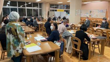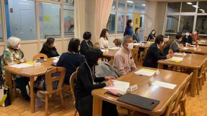 みしまの森学舎の地域であいさつの輪が広がり、繋がるように話し合っています。