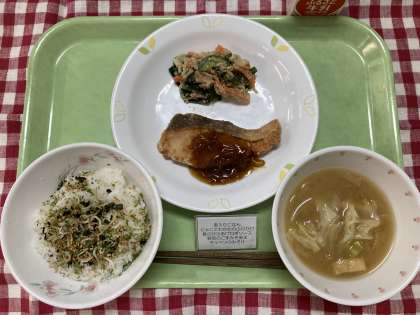 「鮭のからあげねぎソース」、脂の乗った北海道の秋鮭をカラッと揚げて、少し酸味のあるねぎソースをかけました。
