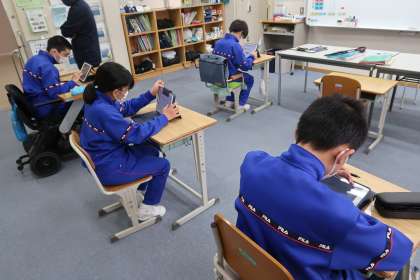 2学期も終わりに近づき、キュビナでこれまでの学習の振り返りをしています。