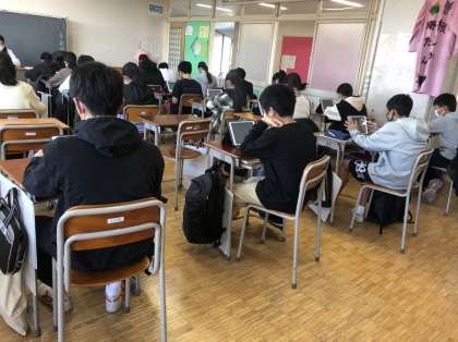 本日は土曜授業日です。 本日は全学年A組が朝キュビナで自主学習しています。