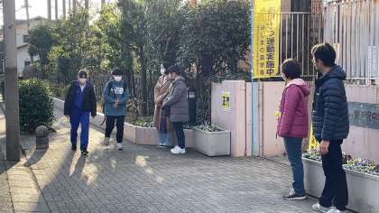 PTAの方々や地域の方々があいさつと見守りを行ってくださいました。