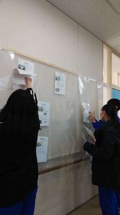 校外学習にむけて実施した事前学習を廊下に掲示しました。