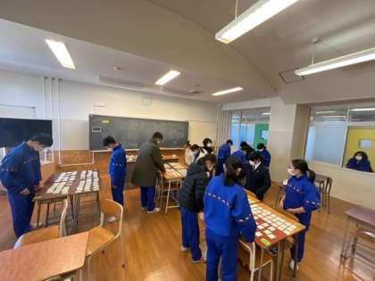一年生は有志で百人一首大会を行いました。 白熱した戦いに、応援者も集いました♪ (有井)