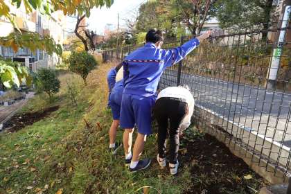 いつものプランターではなく、技術室付近の土手に植えてあります。