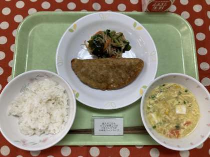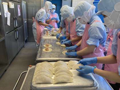 給食室では、みんなでひとつひとつ丁寧に作りました。