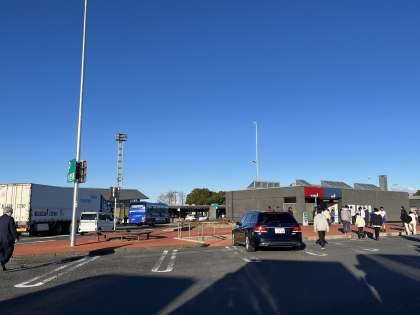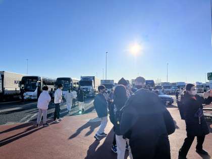 羽生でひと休憩です。 外は寒い! 空気を吸って、リフレッシュ! (倉橋)