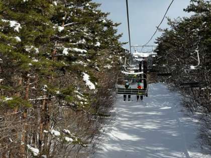 スキー講習が始まりました!中級の4班は早速リフトに乗ります!(松田)