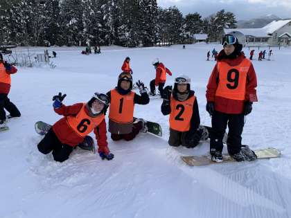 まずは片足滑りから!これができないと、リフトを降りるのが怖いんですよね。
