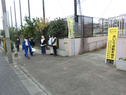保護者の方々のあいさつ運動とともに、活動しました。