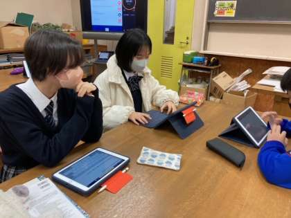 「中学生が欲しいと思う飲み物は?」ーパッケージデザインの授業は、まずデザインする製品の中身から考えていきます。「飲むと脚が早くなる牛乳」、「飲む人の好みによって味が変化する近未来の飲み物」、「等々力渓谷の湧き水」などなど、魅力的な飲み物がたくさん考案されていました。どんなパッケージデザインになるのかこれからまた楽しみです。