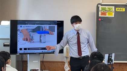 3年生の理科では、酸性とアルカリ性の特徴について学習していました。一つ一つ確認しながら理解していました。