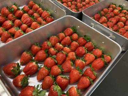 今日のいちごは「スカイベリー」です。栃木県の農家さんが丹精込めて作っています。