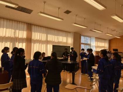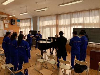 お昼休みの音楽室で、アンジェラアキの「手紙」の美しい合唱が聞こえてきました。2、3年の選りすぐりの男女、来週の指揮者講習会のために即席チームを作りました。いつの間にか一年生も思わず聞きに集まるほどの声量と美しいハーモニー、今年の合唱祭が楽しみです。